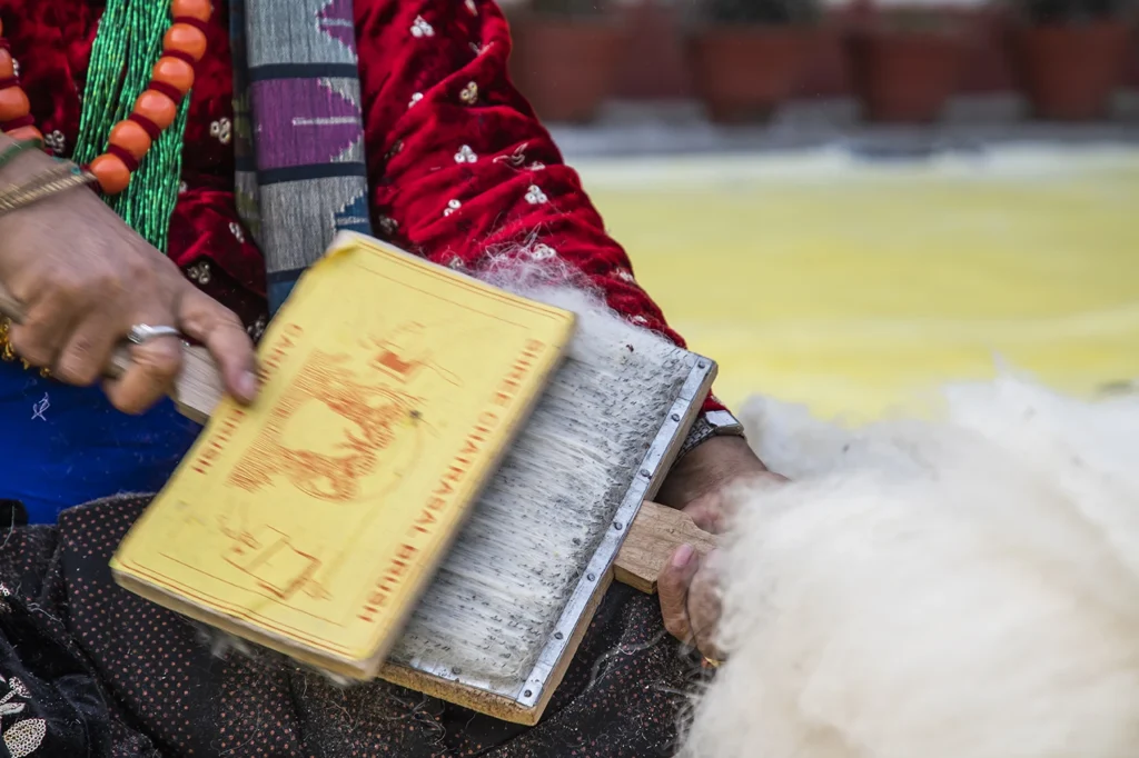 Finishing: Hand-shearing and washing to bring out the fiber’s natural luster.